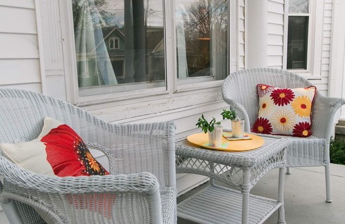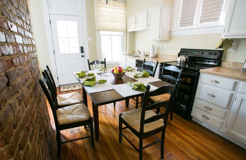 The house is a beautiful two-bedroom, one bathroom home that sleeps up to six (6) people. The master bedroom has a brand new king bed, and there is a second bedroom with two brand new twin-XL beds that can be separated or pushed together into a king. A living room / kitchen with an open floor plan and brick chimney create beautiful gathering space. The new couch in the living room opens to provide a queen sleeper that sleeps two additional people. A fenced-in back yard and back deck provide outdoor dining and relaxing area in warmer weather. Parking on-site in back.