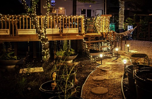 Guests have access to entire home, costume closet, and backyard. Step into your own whimsical world when you enter the backyard, with winding walkways, fairy tale lighting, comfortable seating, and unique garden decor. You can park cars in the backyard, if you want. Home has 6 televisions with cable TV, 2 full bathrooms, and 4 heated queen beds. Additional beds include: 1 unheated queen bed, 1 full bed, 3 twin beds, a pullout bed, and a pack and play crib. Every bedroom has a fan.