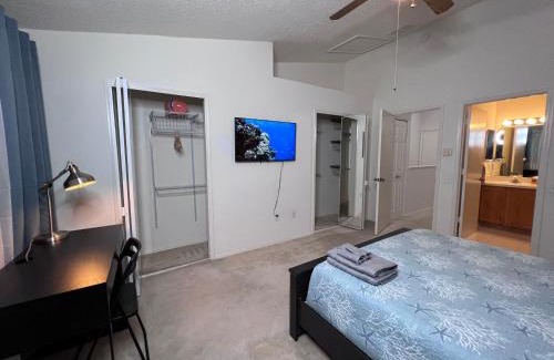 Providing a garden, Elegant Long Stay -KING Bed - POOL - Wifi - Tampa Palms - Moffitt - Gated - Pets OK - in New Tampa by Hunters Green - Live Oak - Cory Lake Isles area - H2 features accommodations in Tampa. The air-conditioned accommodation is 8.3 miles from Saddlebrook Golf Course. There's a year-round outdoor pool and guests have access to free Wifi, free private parking, and an electric vehicle charging station. Featuring a terrace and garden views, the spacious vacation home includes 2 bedrooms, a living room, flat-screen TV, an equipped kitchen, and 2 bathrooms with a bath and a shower. Towels and bed linen are available in the vacation home. For added privacy, the accommodation features a private entrance. Busch Gardens is 9.2 miles from the vacation home, while University of South Florida is 9.3 miles from the property. Tampa International Airport is 17 miles away.
