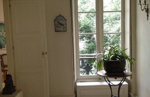 This extremely refined and elegantly furnished 18th century apartment comes with 11-foot ceilings, 10 windows, original parquet floors and moldings, stone floors in the bathrooms and entrance hall, a garden view and weekly housekeeping.