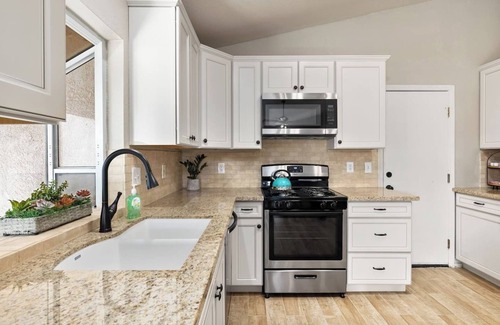 Enjoy this beautifully renovated 2-bedroom, 2-bathroom home styled with 1960s mid-century decor in a quiet Bakersfield neighborhood. This property offers the perfect mix of vintage charm and modern comfort, ideal for couples, professionals, or long-term stays.