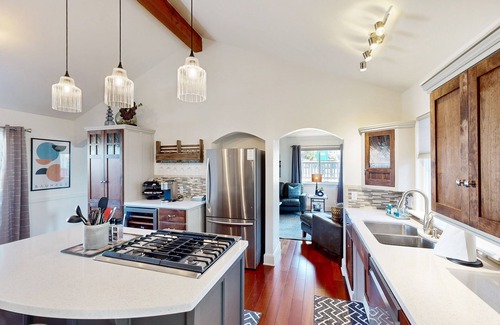 The interior is vibrant and welcoming and will have everything you need for a relaxing stay. Unwind in the cozy living room and stream your favorite TV shows. The polished kitchen features stainless steel appliances and is well-equipped for making your favorite dishes. Entertain at the kitchen island or gather together for a meal in the spacious dining room. A BBQ grill is available should you want to add charred dishes to the menu.