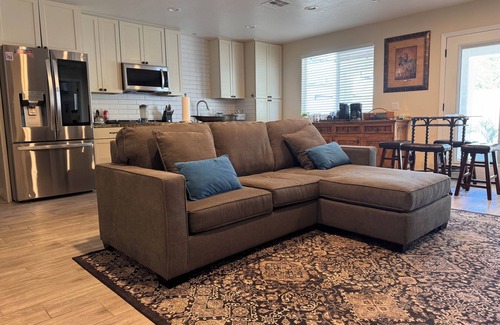 Perfect escape for families & friends at this retreat in Gilbert. The property boasts a spacious 4BD 2BA main house featuring not one but 2 living rooms, ideal for both relaxation and socializing. Complementing the main house is a private-entry guest house, complete with 1BD, 1BA, loft, & pullout couch. High-end finishes throughout create an atmosphere of luxury. Garage, laundry, and generous parking cater to your every need. Minutes away from downtown Gilbert, w/ entertainment & dining options.