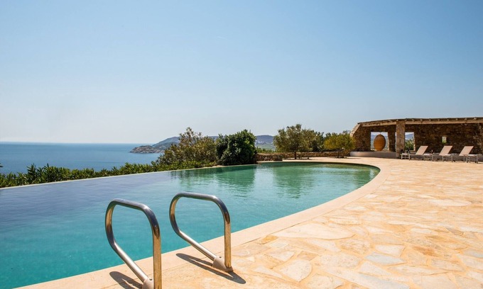ELEGANT SEASIDE VILLA, INFINITY POOL, STUNNING VIEWS, EASY ACCESS TO 3 BEACHES is located in Kalafatis. ELEGANT SEASIDE VILLA, INFINITY POOL, STUNNING VIEWS, EASY ACCESS TO 3 BEACHES provides accommodation, featuring Oceanfront, Wellness Facilities, Child Friendly, among other amenities. This Villa features Oceanfront, Wellness Facilities, Child Friendly, to make your stay a comfortable one.