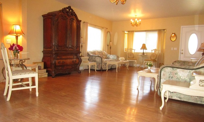 Welcome to our large 5 bedroom, 3 bathroom lovely, affordable, elegant, well-appointed, exceptionally clean and fully furnished single family home with over 2400 square feet. This home can accommodate up to 15 Guests comfortably.