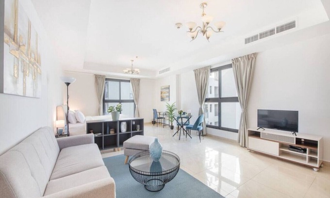 This modern studio presents a welcoming ambience with a modern décor and spacious layout, and comes fully equipped for a relaxing and stress free stay in Dubai.