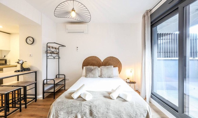 This modern, stylish studio in San Sebastián de los Reyes provides a cozy, elegant retreat near Madrid. Its open-plan design features a sleeping area, fully equipped kitchen, and living space, plus a private street-level terrace and garage access. Air conditioning, heating, solar-heated hot water, Wi-Fi, and essential amenities (towels, toiletries, cleaning kit, welcome coffee) ensure a comfortable stay. The double bed and sofa bed accommodate up to two guests.