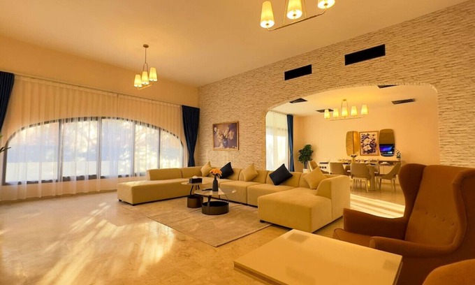 Best-rates for the Al Danah villa starts from $960 per night with includes Kitchen, Laundry, Parking, Wellness Facilities, Guest Services, Child Friendly, Internet, Air Conditioner, Pet Friendly, TV, Balcony/Terrace, Security/Safety with all other amenities. Perfect for Weddings is committed to ensuring every guest experiences a comfortable and extraordinary stay, whether planning a romantic getaway, a honeymoon, a pet-friendly stay, or celebrating with the entire wedding party.
