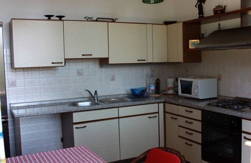 The villa is surrounded by a large garden where guests can spend quiet moments in the shade of beautiful plants. The apartment, with direct views of the garden, consists of 1 bedroom, 1 bedroom with two single beds, one bathroom, a fully equipped kitchen and large living room with direct views of the garden. Barbecue, gazebo and table tennis available to guests.