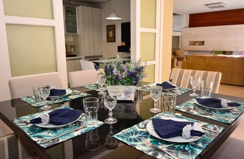 Located in Florianópolis, this 4-bedroom vacation home lets you experience it all. Fans of nature and the outdoors will love being 28 minutes by car from Joaquina Beach and 34 minutes from Barra da Lagoa Beach. With the property's convenient onsite parking, you'll be ready to make the quick 3-minute drive to Floripa Shopping Center or the 5-minute drive to Ademir Rosa Theater.