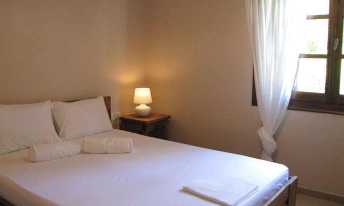 Villa Eleni offers comfort and plenty of space. Two houses with a swimming pool (4 x 6 m, depth: 1.20-1.50 m), operating until the end of September, as well as a large garden, are available for you.