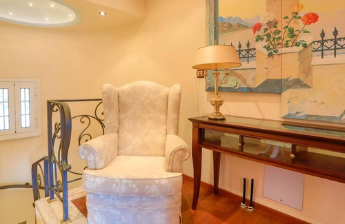 Escape to a luxurious retreat at Villa Eleonas, nestled in a rural area of Korakiana village near Ipsos. Surrounded by an olive grove, this superb holiday property boasts exceptional furnishings and tastefully decorated interiors distributed over two levels, including an elegant lounge, fully equipped kitchen, study room, and guests' WC on the ground floor. French doors open onto a large front balcony with scenic views, while the upper level features four double bedrooms, one with an en-suite bath/jacuzzi and a small sitting room.