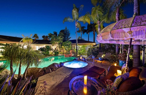 Welcome to the stunning Elevado Hills Family Getaway ~ Pool ~ Games ~ Pkg!, an ideal venue for your dream wedding celebration. Nestled in a tranquil setting, this spacious home offers beautiful views of the mountains and ocean, creating the perfect backdrop for romantic ceremonies and memorable receptions. With ample space for family reunions and wedding preparations, you can enjoy both intimacy and grandeur on your special day.