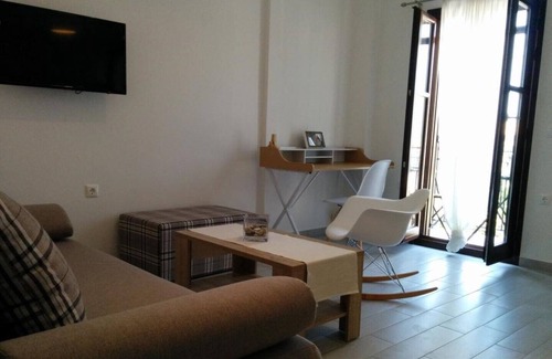 Elezar is a building with 4 apartments each one around 40square meters. Each apartment has one bedroom with a double bed one bathroom with a shower and one space which is kitchen and living room with sofa bed. The apartments are fully equiped. Hotel services are offered. You will feel like home or even better. Breakfast can be offered in the apartment under request.