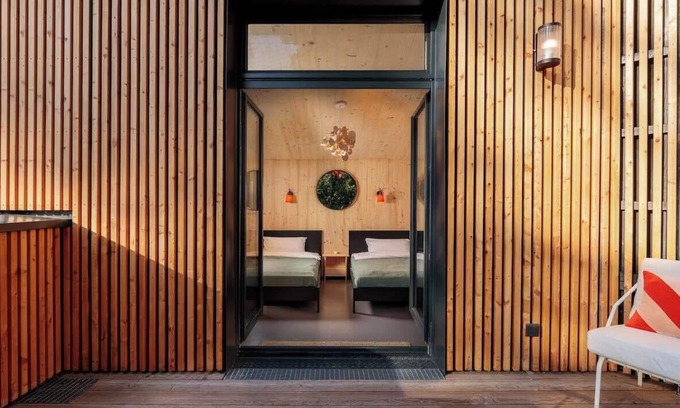 Look out of the bedroom window into the forest or onto the lake. Into a real forest.