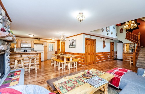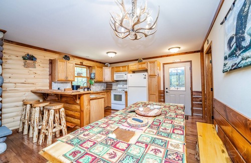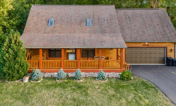 We just finished our third cozy cabin in a very popular Tranquility subdivision of Baraboo. This location is highly desirable. We are close to everything. Devils Lake State Park is one mile away, Tumbled Rock Brewery & Kitchen is steps away, Wisconsin Dells is less than 20 minutes away, golf club is one mile away. There are two ski resorts - Devil’s Head Resort located only 6 miles away from our cabin, and Cascade Mountain - that is located 12 miles away. Baraboo has a beautiful downtown, grocery stores are minutes away. This is our third cabin on the market. We just remodeled everything from the top to bottom. On the second level there are two bedrooms and loft. First bedroom has a queen and full bunk bed, and a full bathroom. Second bedroom has a full and twin bunk bed, and a full bath. There is a loft, with a queen bed and futon. Master bedroom is on the main floor with a beautiful aspen log queen bed , futon, and full bathroom. Living room has L-shape sofa, cozy gas fireplace, smart tv ( Roku tv ), and of course high speed internet. Kitchen has a huge log dining table for 10 people, all of the kitchen equipment you would need for cook preparation and cooking, coffee maker, toaster etc… Back side has a beautiful porch with table and benches. Behind the house is nice fire pit with the benches around. There is also a Propane grill. In the attached garage you will find a second refrigerator, small pool table and foosball table, and some yard games. Elina’s log cabin has the best location in whole subdivision. On asphalt driveway you can easily park up to 4 cars. Our cabin is design for 9 adults, but it can accommodate up to 12 including children.
