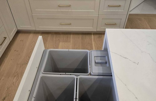 Chef’s Kitchen - Built ‘in woodwork, Fluted range hood & Island, Lights under cabinets, Jenn air appliances (Fridge, Gas stove, Dishwasher), Built in microwave/oven, Lazy Susan, Garbage bins, Double tone cabinets, Dove tail drawers, Servery, Quartz countertops, Multi-functional sink, Pot filler, Cooking and serving pots and utensils, breakfast bar with huge island.