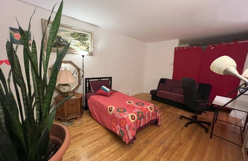 This is one of the top location just for students! HUGE, spacious and serene living room for a student. Its close with curtains not with door but you have your privacy and you are alone there! Nobody pass by your living room! You are mandatory to clean every space after use it. No cleaning fees charged but if you are not cleaning every time it is a charge of 100CAD$ by week for cleaning lady!!! Very clean, spacious and very good location. One of the BEST location in Montreal! Bus in front of the building, metro station in 3 minutes by bus or 10 minutes walk! Very Hight class people around! The Best you can have! All are around! Food stores, restos, banks and more...Our appartement is in Monkland village. The appartement is with shared bathroom-with shower- and shared kitchen, few steps to the bus station to subway station, food store, pharmacy, restaurants, banks etc. All is around this place. Please respect all neighbors and be quiet, you are few steps to all amenities. You have also free or paid parking. I can help with fast Internet. All guests need to register with any identification when they arrive. Minimum stay 32 nights. You can come just yourself to live in my shared appartement. Other people are not allowed! I am allergic to animals, cigarettes or any other vape substances- so all are strictly forbidden!!! This room is not recommended for kids because this place is just for students. Please clean the space after you use it. No shoes inside! You have to wear clothes on top and bottom when you are outside of your room! Cooking is fine - but please avoid any FRIED meals with rich spices or other foods that leave long lasting odors (bacon, fish etc. and other fried foods- we have allergies at!!! ) in respect to us, our insurance and other guests. Please clean your room and any space after using it! Parties are strictly forbidden and extra Guests not mentioned in the booking are not tolerated. I Be Happy! Enjoy!