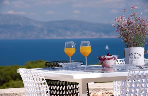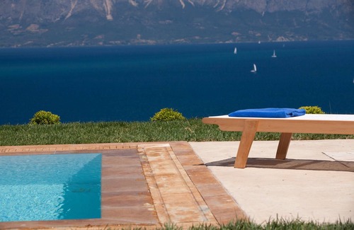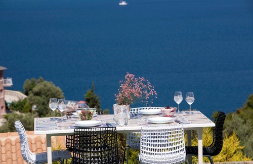 Built amphitheatrically in one of the most beautiful locations on the enchanting island of Lefkada offering a magnificent viewof the Ionian sea ,with a private pool and complete amenities required for your luxurius stay!