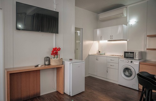 While you're here, you can enjoy all the comforts of home and more, including a rainfall showerhead and a refrigerator, as well as free WiFi and a Smart TV. Other amenities include premium bedding, a Tempur-Pedic bed, towels, and slippers.