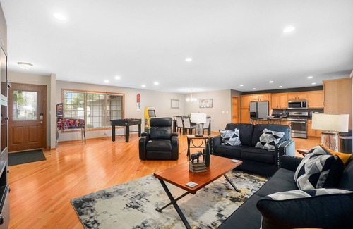 1800 SF unit is located near O'hare Airport, Schaumburg, and Hoffman Estates, which gives easy access to plenty of bars/restaurants! This property has 4 bedrooms, 2 full bathroom. Master suite has a KING, 3 rooms have Queen beds. The home has space for the 1 air mattress on-site. (Total of 5 beds). Plenty of Kitchen utensils, including cooking spices and oils! Children friendly & lots of technology!