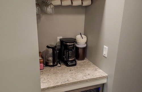 Spend your days discovering the natural beauty of the Olympic Coast before heading back to Elk Prairie Retreat. The open floor plan allows you to prepare family meals in the full kitchen or grill outside on the gas BBQ, sit down for dinner at the large wooden dining table with space for 10, and swap stories of the day's adventures as you cozy up in the giant sectional in the living room. The well-equipped kitchen features a full suite of appliances, quartz countertops, and plenty of counter space. A separate coffee bar area allows you to brew up a pot of drip coffee, warm up water in the electric kettle and chill your soda or wine in the beverage cooler. When it's time to turn in, you've got four bedrooms to choose from, three with king beds and one with two queen beds. Closets have shelving, hangers and custom built in luggage shelves. All three ensuite bathrooms feature walk in showers with a built-in bench and the hall bathroom is set up with a deep tub. At the back entrance/mud room you will find a washing machine and two dryers.