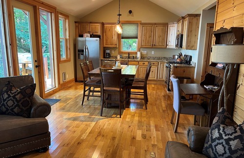 The cabin is Pet friendly and we welcome them. Amenities include complimentary wireless internet access, cable TV, in-unit laundry machines, large deck and backyard, patio furniture and outdoor dining area, gas grill