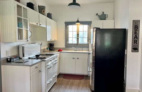 - Cozy Amenities: Experience the warmth of hardwood floors, a stone gas fireplace, and a fully stocked retro kitchen, ensuring that every stay feels like a home away from home.