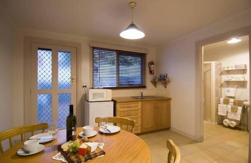 The well equipped kitchenette has fridge, microwave, electric hot plates, electric fry pan,kettle, toaster, crockery and cutlery, and a roomy dining area. The bathroom is complete with quality soft towels, a heated towel rail, toiletries, iron and ironing board.