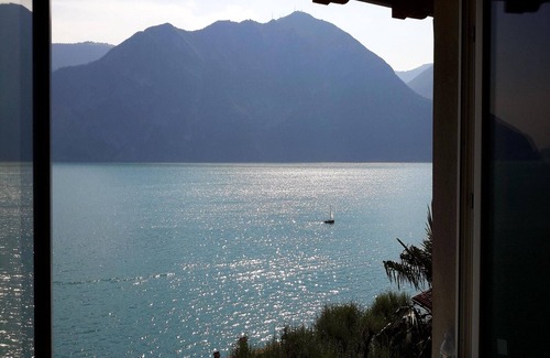 Wake up to panoramic lake and mountain views at this peaceful second-floor apartment in Vello di Marone. With a private balcony overlooking Lake Iseo, air conditioning, and heating, it's a cozy escape in every season. The open living space is filled with natural light, perfect for relaxing after a day of exploration. Just 300 meters from a lakeside garden, you can enjoy sunbathing or a quiet read by the water.