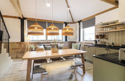 Elm Cottage - Fold Yards is a house that consists of a kitchen with an electric oven, induction hob, microwave, fridge, washing machine, dishwasher, kettle, and toaster, a dining room with seating for all guests, and a sitting room with a Smart TV. The bedrooms consist of a ground-floor king-size and king-size. There is a shower room with a walk-in shower, double basin, heated towel rail, and WC. Outside, there is a private rear patio with furniture, a front shared garden with patio and gravelled area, and off-road parking for plenty of cars. Sorry, no pets and no smoking. You can find a shop in 2 miles and a pub in 1.5 miles. WiFi, fuel, power, bed linen and towels are all included in the price. Visit Elm Cottage - Fold Yards for your next adventure. Note: This property does not accept arrivals on a Sunday. Note: This property has a connecting door to property Holly Cottage (1156476) which enables both cottages to be rented as one if required. Note: Bookings at this property must be a minimum of 2 nights.