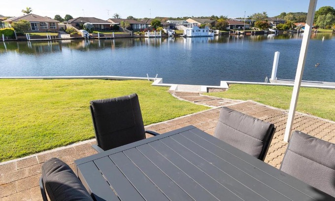 Providing a terrace, Elouera Crescent offers accommodations in Forster. The air-conditioned accommodation is 22 miles from Myall Lakes, and guests can benefit from on-site private parking and complimentary Wifi. Offering a patio and lake views, the spacious vacation home includes 3 bedrooms, a living room, flat-screen TV, an equipped kitchen, and 3 bathrooms with a bath and a shower. Guests can enjoy a meal on an outdoor dining area while overlooking the river views. The vacation home offers bed linen, towels, and laundry service. Guests can make the most of the warm weather with the property's barbecue facilities. Guests at the vacation home will be able to enjoy activities in and around Forster, like fishing. Forster Marina is 3 miles from Elouera Crescent.