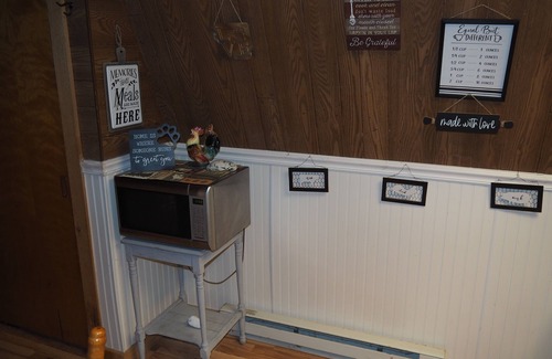 The apartment is very traditional in terms of décor with an up-north country theme throughout the apartment. The apartment is dog-friendly and up to 2 dogs are permitted with a pet fee. There are some trails on the property for walking dogs as well.