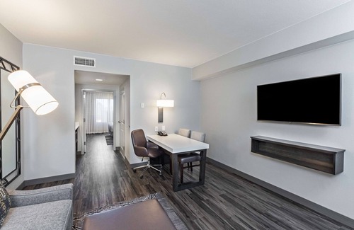 This hotel features a wealth of amenities designed to enhance your wedding experience. Enjoy complimentary cooked-to-order breakfast to start your special day, as well as free self-parking for your guests. The property boasts an inviting indoor pool and spa tub perfect for relaxation before or after the festivities. In addition, every suite includes a comfortable queen sofa bed, refrigerator, microwave, and 49-inch LCD television, making it easy for you and your loved ones to unwind. Other offerings include a 24-hour fitness center, free Wi-Fi, and a convenient business center to assist with any last-minute planning needs.