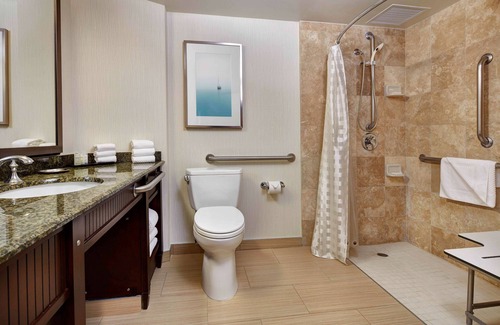 Embassy Suites by Hilton San Diego La Jolla offers 340 accommodations, which are accessible via exterior corridors and feature laptop-compatible safes and complimentary newspapers. Accommodations offer separate dining areas. 49-inch flat-screen televisions come with premium digital channels and pay movies. Guests can make use of the in-room refrigerators, microwaves, and coffee/tea makers. Bathrooms include shower/tub combinations, complimentary toiletries, and hair dryers.