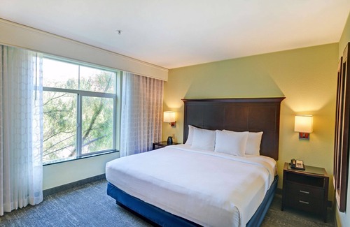 Your stay at Embassy Suites by Hilton Valencia comes with a wealth of amenities designed to enhance your wedding accommodation experience. Enjoy complimentary buffet breakfast each morning, unwind at the outdoor pool and spa tub, or take advantage of the 24-hour fitness center. Each suite features a separate living space, a 50-inch flat-screen television, and convenient in-room amenities like refrigerators and microwaves to make your stay comfortable and stress-free. Additionally, the hotel offers versatile event spaces where you can host your wedding reception, ensuring every detail is attended to.