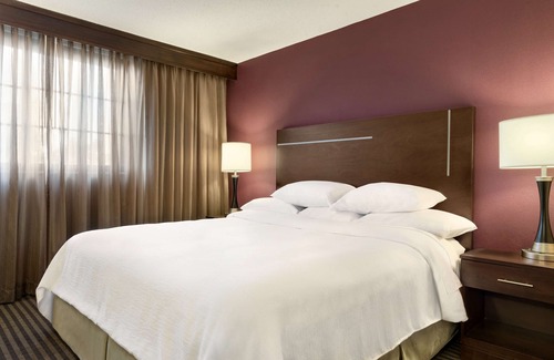 Your experience at the Embassy Suites will be enhanced by an array of amenities that ensure both you and your guests enjoy a memorable stay. Delight in complimentary cooked-to-order breakfast during weekdays, as well as access to the indoor pool and a 24-hour fitness center. Each of the 234 spacious accommodations features premium bedding, separate sitting areas, and kitchenettes equipped with refrigerators and microwaves. Luxurious bathrooms come with complimentary toiletries, ensuring relaxation for everyone involved in your celebration. As a wedding accommodation, the hotel offers exceptional room layouts, perfect for hosting pre-wedding gatherings or post-reception brunches.