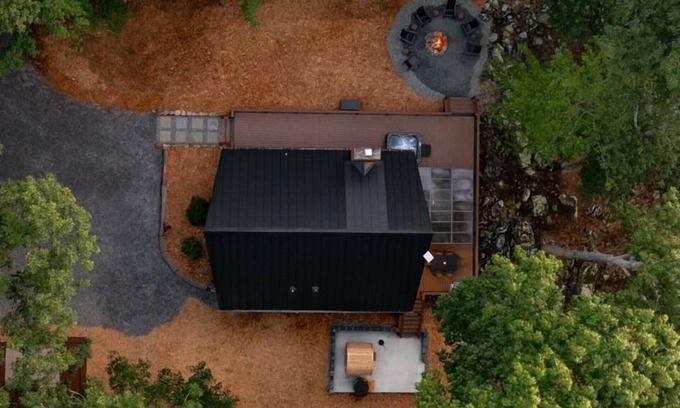 Emberwood is a boutique 2BR/1BA mountain chalet with a reading/sleeping loft. Ideal for a couples’ retreat or small family getaway, this luxury property features professionally-designed interiors and an outdoor nature spa with hot tub, sauna, cold plunge, fire pit, and geodesic stargazing dome on six private acres with mountain views. Emberwood sleeps up to 6, and is located within 15 minutes of multiple nature hikes, wineries, breweries, restaurants, and local artisans' shops and galleries.