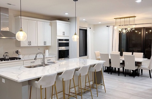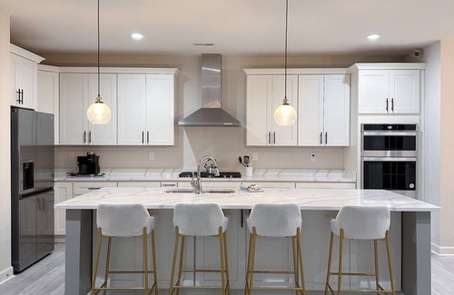 Book your stay at our custom-built modern home and experience the perfect blend of luxury and comfort. The spacious living area is perfect for relaxation and entertainment, featuring plush seating and an extra large flat-screen TV. The open-concept layout seamlessly connects the living area to the fully equipped kitchen, allowing you to prepare delicious meals with ease. Jetted bathtub to unwind at end of day!