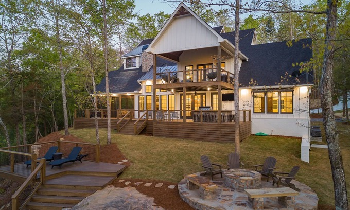 Featuring 3 different levels, extensive outdoor entertaining spaces, and beautiful views, this 5,000 sq ft lakefront home comfortably hosts and sleeps 20.