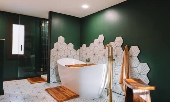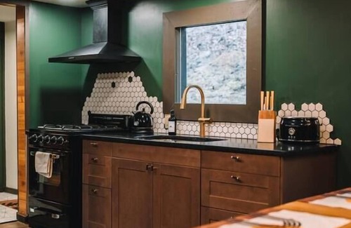 Escape to a stunning midcentury cabin that offers the perfect blend of modern amenities and retro charm. Each room comes with its own bathroom, ensuring utmost comfort and convenience during your stay. Relax in the private backyard, complete with a fire pit and hot tub, or cozy up by the fireplace indoors. The stylish midcentury decor throughout the cabin adds a touch of nostalgia, while still providing all the modern comforts of today.
