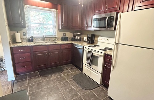 Make yourself at home in this stylishly updated two-level gem in Beckley. This welcoming townhome balances modern decor with traditional comfort and features 2 bedrooms- 1 king and 1 queen bed with 4-inch memory foam mattress toppers for a relaxing nights rest and 1 1/2 baths that includes a large walk-in tiled shower. Whether your travel brings you for work or leisure, it is an ideal choice for couples, families, and medical and business professionals and is well equipped for short and long stays. With amenities like a private patio with a sitting area and grill, large seasonal community pool, playground and basketball court, guests can unwind, relax and refresh. If your stay includes exploring some of our local attractions such as Tamarack and the Exhibition Coal Mine, they are less than 5 minutes away. For outdoor activities, Grandview National Park is 15 miles, Winter Place is 19 miles, and the New River Gorge Bridge National Park and Preserve is 24 miles. Discover all Southern West Virginia has to offer- right from your stay at Emerald Escape!