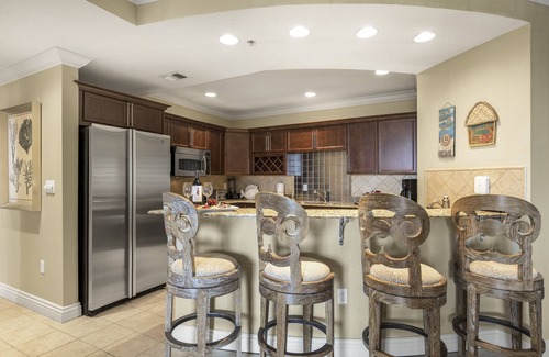 Emerald Grande Condominiums at HarborWalk Village offers 280 accommodations with washers/dryers and DVD players. Beds feature premium bedding. 48-inch flat-screen televisions come with premium cable channels. Bathrooms include showers, designer toiletries, and hair dryers.