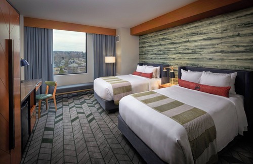 Emerald Queen Hotel and Casino - Tacoma offers 155 air-conditioned accommodations with laptop-compatible safes and hair dryers. These individually decorated and furnished accommodations have separate sitting areas. Pillowtop beds feature down comforters and premium bedding. 55-inch Smart televisions come with premium cable channels, first-run movies, and pay movies. Bathrooms include showers with hydromassage showerheads.
