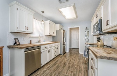 Welcome to your ideal getaway! This spacious 4-bedroom, 2-bathroom home offers the perfect blend of comfort and entertainment. Gather in the inviting game room for friendly competition or relax on the patio equipped with a built-in grill, perfect for evening barbecues under the stars.