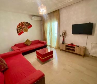 5.7 miles from Salammbo Tophet Archaeological Museum in Tunis, emplacement exceptionnel provides accommodations with access to wellness packages, spa center, and beauty services. This property offers access to a terrace and free private parking. The accommodation offers an elevator, full-day security, and currency exchange for guests. This air-conditioned 2-bedroom apartment comes with a fully equipped kitchen, a seating area, a dining area, and a flat-screen TV. For added convenience, the property can provide towels and linens for a supplement. For added privacy, the accommodation features a private entrance. Guests may eat at the on-site family-friendly restaurant, which is open for dinner, lunch, and brunch. Guests can stay active with the fitness classes held in house. The apartment has a picnic area where you can spend the day outdoors. Carthage Golf is 2.3 miles from the apartment, while Byrsa Hill is 4.9 miles from the property. Tunis–Carthage Airport is 0.6 miles away.