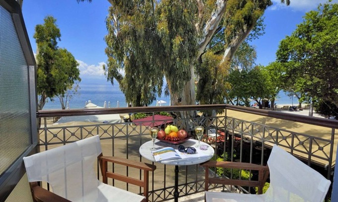 Location: The hotel with its studios and flats is located 18 km south of Volos in Kala Nera directly on the beach. Only the local road (5 m) separates the hotel from the sandy beach.
