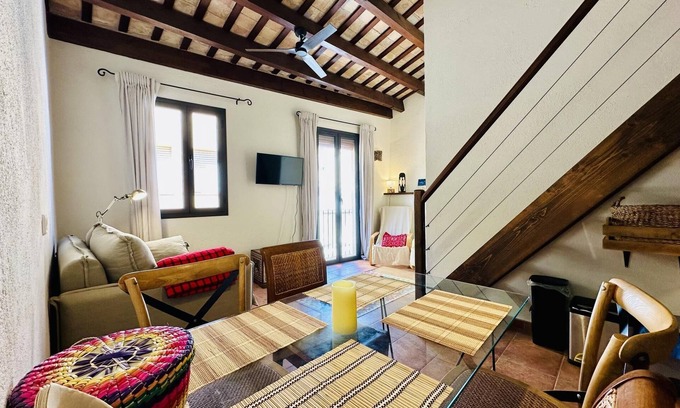 The accommodation has just been completely renovated and the decoration is contemporary and with warm lines. Upon entering we find a dining room with open kitchen, air conditioning, good windows and brightness, and generous space for the 3 people who can stay there. The air conditioning is located in such a way that it cools the entire accommodation in the best possible way. On the same floor we find the bathroom, the main bedroom with a 1'60 cm bed and a bedroom with a single bed. From the living room there is access to the loft where we find a work, reading and rest area ... a multifunctional space.