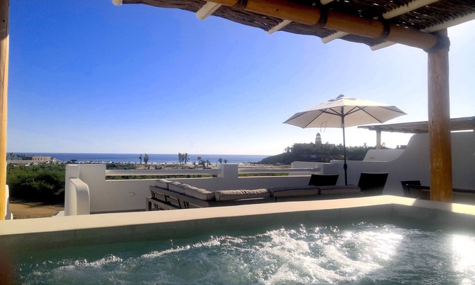 Bienvenidos to your Baja beach home! This penthouse is located steps away from Cerritos Beach: the safest swimmable beach on the Pacific side and an amazing surf spot. Our elegant and laid back Penthouse features cosy and stylish interior design, a private rooftop jacuzzi with breathtaking views, fiber optic internet, washer and dryer and a pool : all that you have been looking for on your Baja vacation!