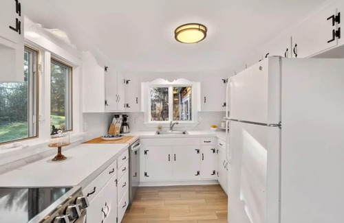 Keep it simple at this peaceful and centrally-located place, a unique guest cottage located in a picturesque field. You won't ever believe it until you see it! the perfect little dream house that feels like being in the English countryside. Comfortably decorated and offers a fully equipped kitchen to meet your needs. There are two bedrooms upstairs and a full bath on each floor.
